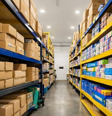 We securely store your inventory in fully insured, professionally managed warehouses until it's time for preparation and shipping. With both shelving and pallet storage options available, we tailor our storage solutions to your specific needs — ensuring your goods are always safe, organized, and ready to move.