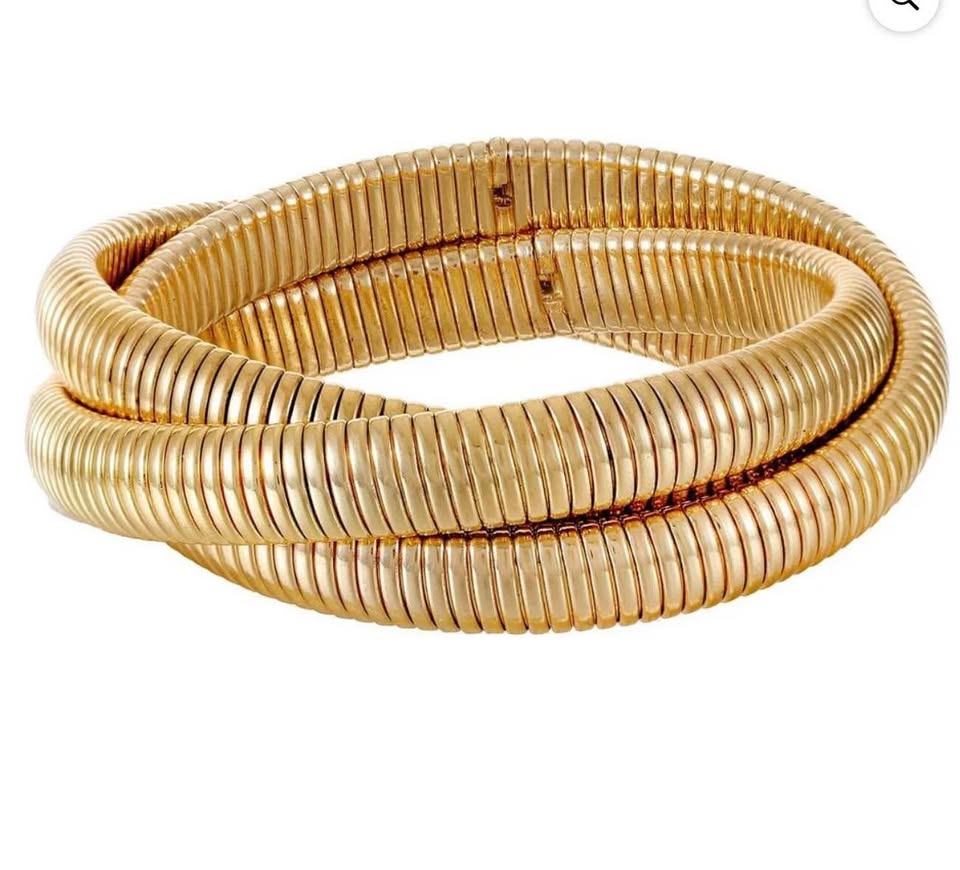 Layer up your look with this classic Time and Tru Bracelet. Casually intertwined bangles wrap your wrist in a ribbed, gold-tone finish that's sure to complement any look. The bracelet has a bit of flex, so it is easy to put on and comfortable to wear all day long
